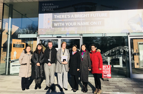 11月27日-12月1日,中华女子学院副院长王练、儿童发展与教育学院副院长、教务处处长助理、儿童发展与教育学院院长助理以及学前教育艺术教研室主任一行五人前往英国赫尔大学进行了短期学术访问。英国赫尔大学国际交流办公室主任C.Michel、艺术文化和教育学院院长Ruth Butler、学前教育专业负责人Thamara Bulmer以及相关专业教师等11人热情接待了女院考察团。