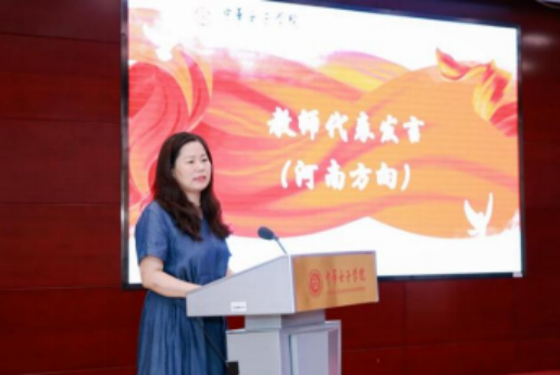 文化传播与艺术学院教师覃晓玲代表赴河南新蔡县的“爱心妈妈”们,介绍了留守儿童关爱活动对接准备的情况,表达了团队“以爱为帆,以行动为桨”的服务决心。体育部教师周惠娟代表即将赴四川、广西、新疆等民族地区开展“足球赋能 石榴花开”足球支教活动的带队教师,阐述了体育育人、特色支教的品牌内涵,期待团队携手并肩,为民族地区的少年儿童送去温暖,促进民族团结,为乡村振兴播撒希望的种子。